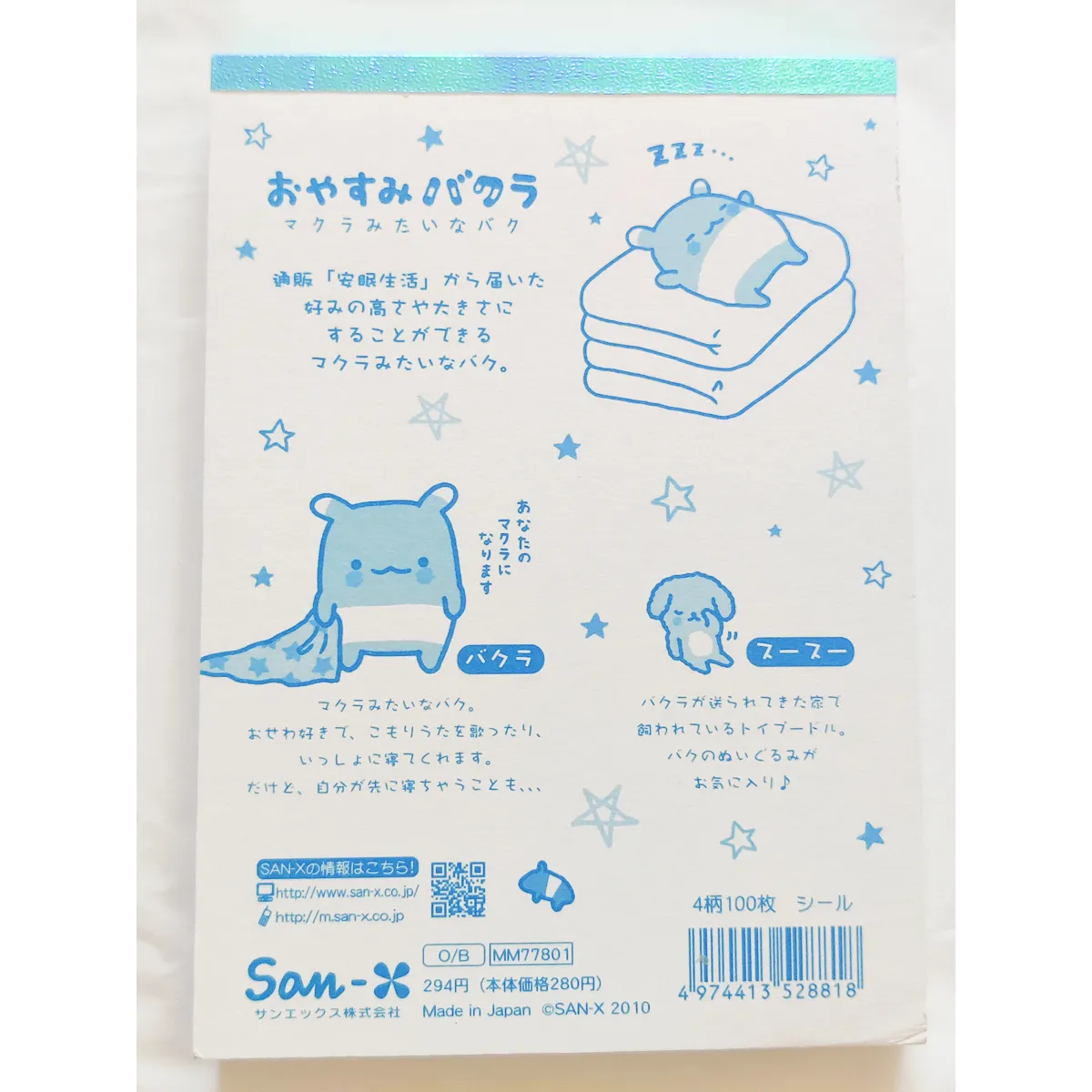 San-x Oyasumi Bakura Kawaii Large Memo Pad